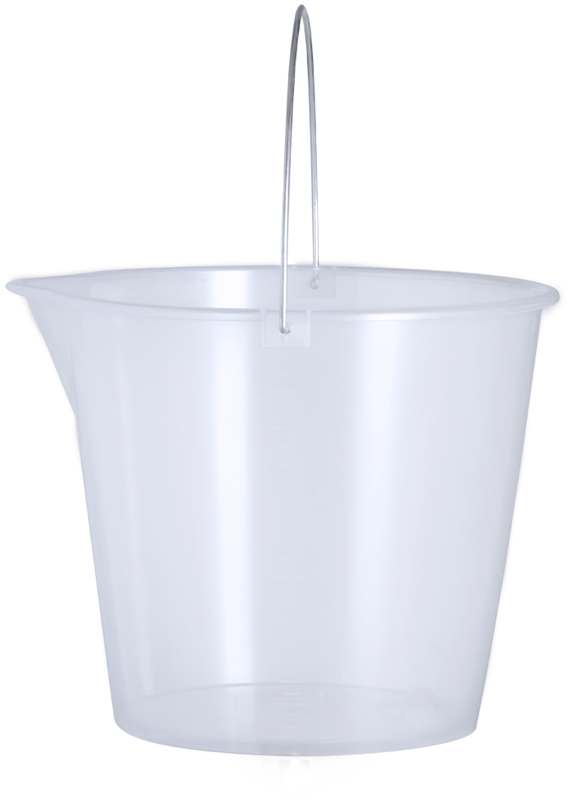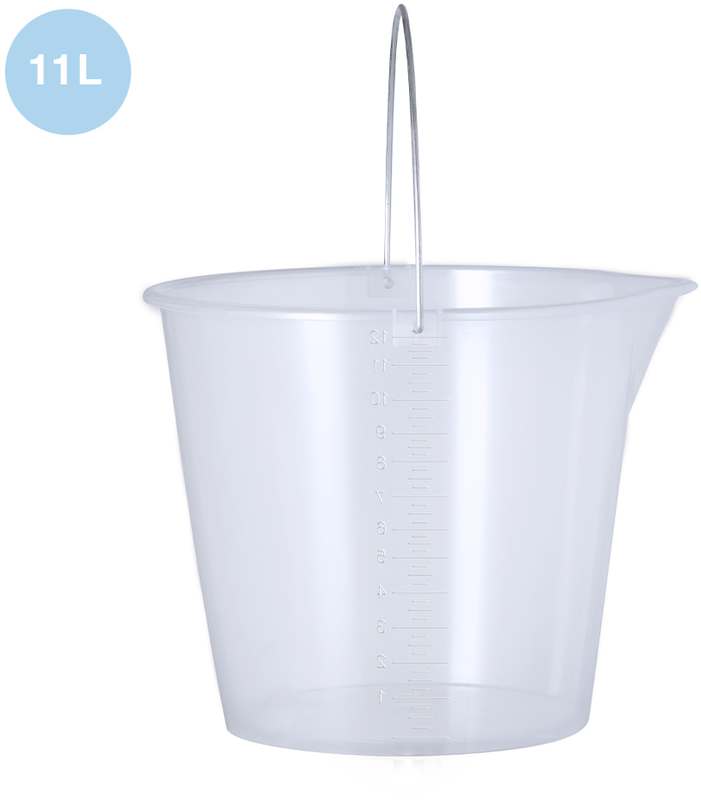 11L vědro z odolného průhledného PP. S kovovou rukojetí a boční odměrkou v ml pro rychlé a snadné prohlížení. Zaoblený obrys s vylévacím hrdlem zabraňujícím rozlití a navíc velká plocha pro značku.