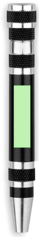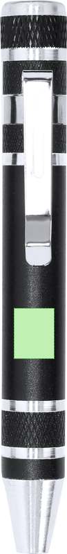 Multifunkční sada nářadí s baterkou a hliníkovým šroubovákem. Obsahuje: - Šroubovák se 6 magnetickými hlavami: 3 ploché a 3 hvězdičky, vybavený praktickou kovovou sponou pro snadné připevnění a přepravu. LED svítilna s 9 LED, napájená 3 AAA bateriemi (nejsou součástí balení). Obsahuje šňůrku na zápěstí pro pohodlí a bezpečnost při používání. Dodáváno v černé krabičce.