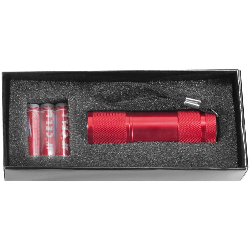 Praktická baterka z hliníku s 9 LED diodami. Balená v hnědé krabičce s 3 bateriemi.