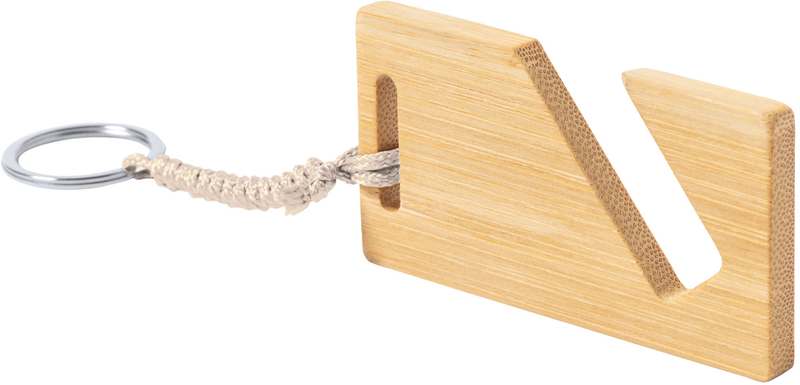 přívěsek na klíče s bambusovým stojánkem na mobil s kovovým kroužkem. detailCena bez DPH