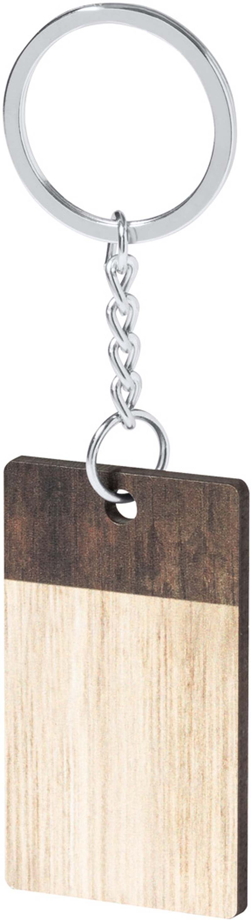 Dřevěný obdélníkový přívěsek na klíče s kovovým kroužkem a dvoubarevným povrchem. detailCena bez DPH