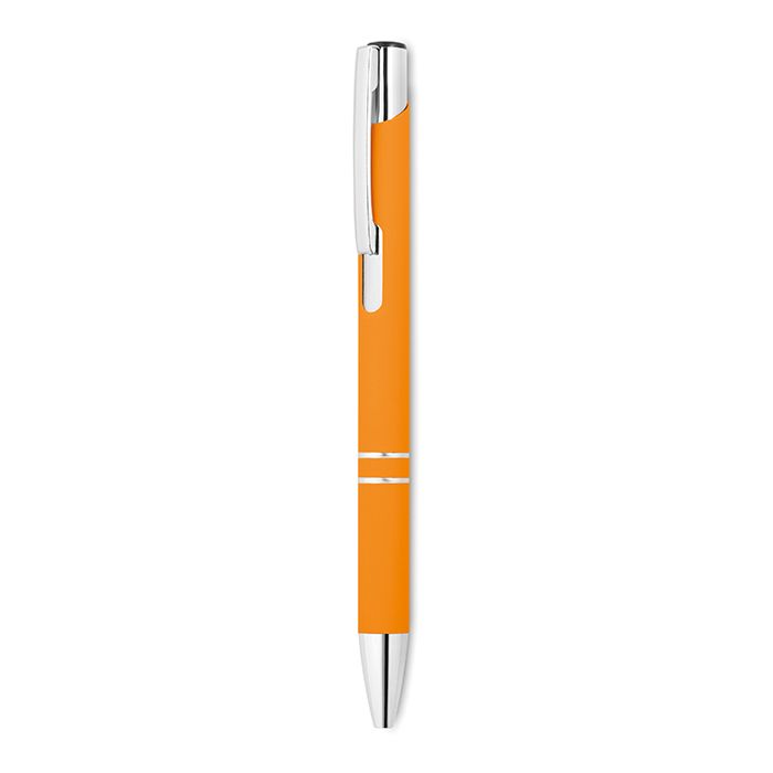 Kuličkové pero v pogumovaném vzhledu s lesklými doplňky. Modrý inkoust.