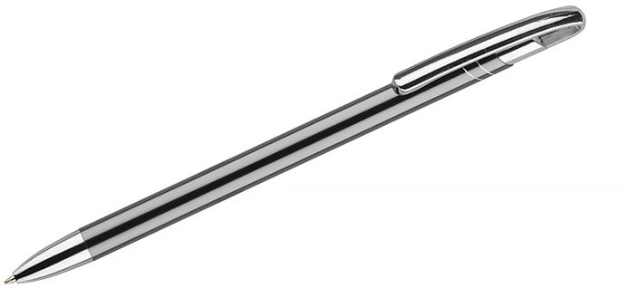Elegantní kovové pero v kombinaci lesklého a matného kovu.
