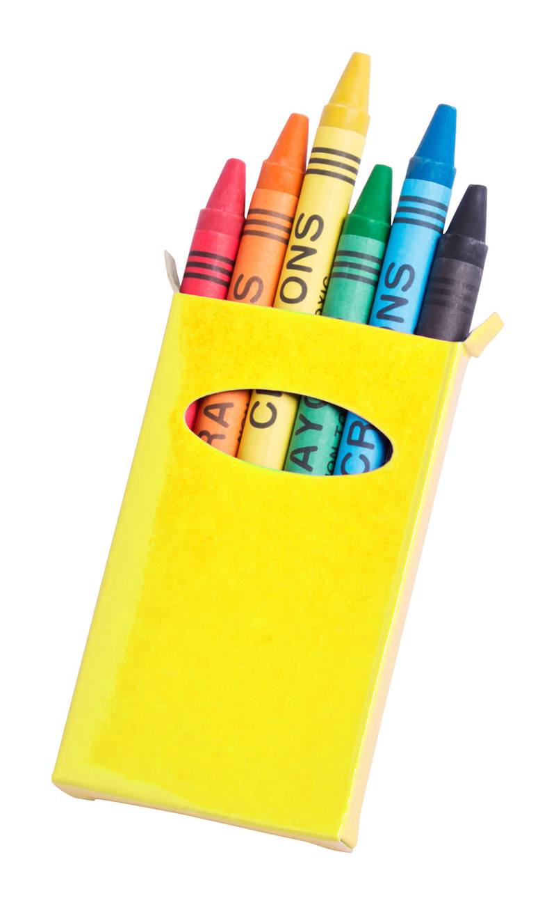 Voskovky v barevném papíru (6 ks) a v barevné papírové krabičce.