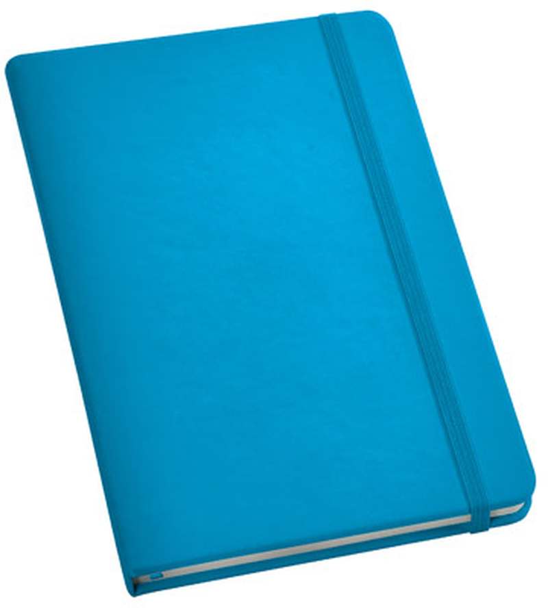 Poznámkový blok A5 se 160 stranami bez linek s tvrdými deskami z imitace kůže.