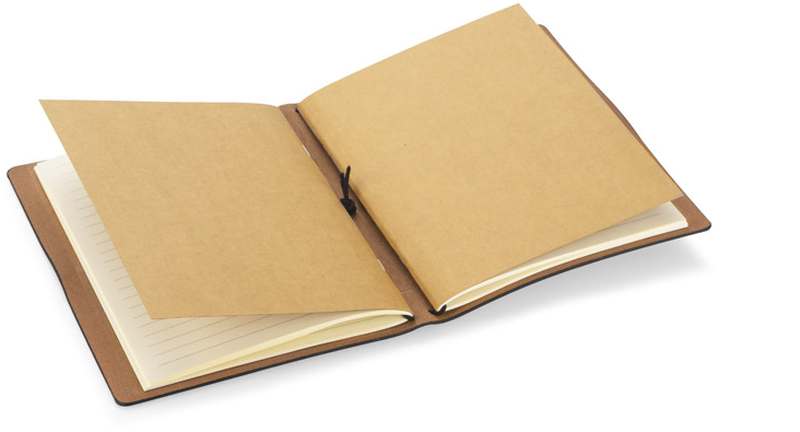 RETRO LITE notebook s retro vzhledem. Potah je vyroben z ekokůže a je dodáván v nadčasových barvách - černé a hnědé. Uvnitř jsou dva vyměnitelné 40stránkové linkované sešity. Velikost A5, 80 g/m2.