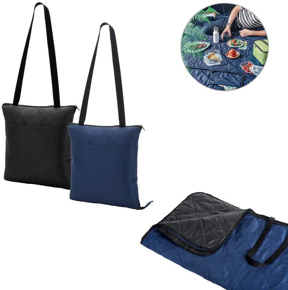 Skládací piknik z recyklovaného polyesteru (100% rPET), s PEVA na zadní straně. Po složení se z něj stane taška na přenášení s kapsou na přední straně. Ideální pro venkovní aktivity