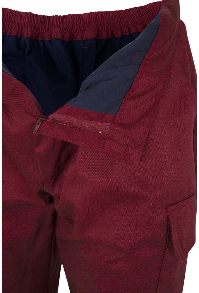 Dvoubarevné keprové kalhoty (210 g/m2), podšité, s mnoha kapsami, z bavlny (20 %) a polyesteru (80 %). S elastickým pasem, s reflexními pruhy na spodní části nohavic. Obsahuje šest kapes (2 Francouzské kapsy, 2 boční měchové kapsy a 2 zadní kapsy).