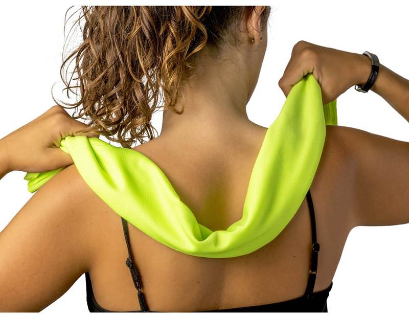 Fitness chladicí ručník RPET. Dodáváno v černém pouzdru z netkané textilie. Ručník lze prát v pračce a lze jej tedy znovu použít.
