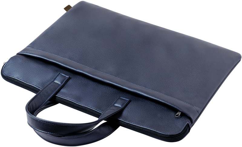 Taška na dokumenty z recyklované kůže s polstrovanými přihrádkami na zip a zesílenými uchy. S výrazným štítkem z recyklované kůže.