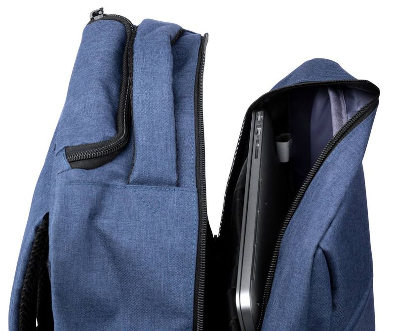 Batoh na kolečkách s vypolstrovanými přihrádkami na laptop a tablet, vypolstrované ramenní popruhy. S vestavěným USB připojením pro power banku. 300D polyester.