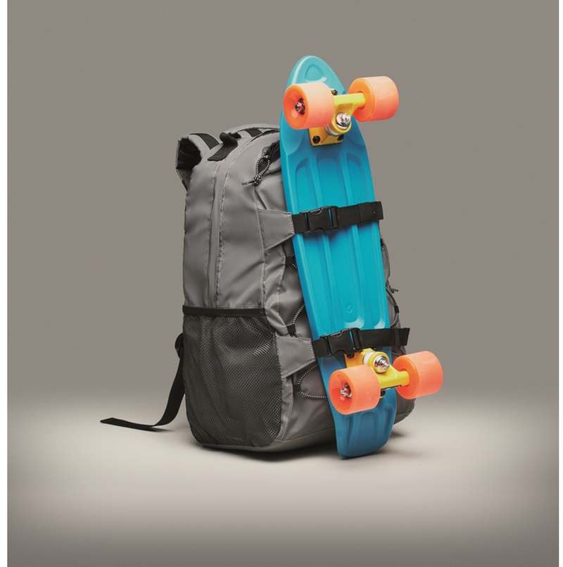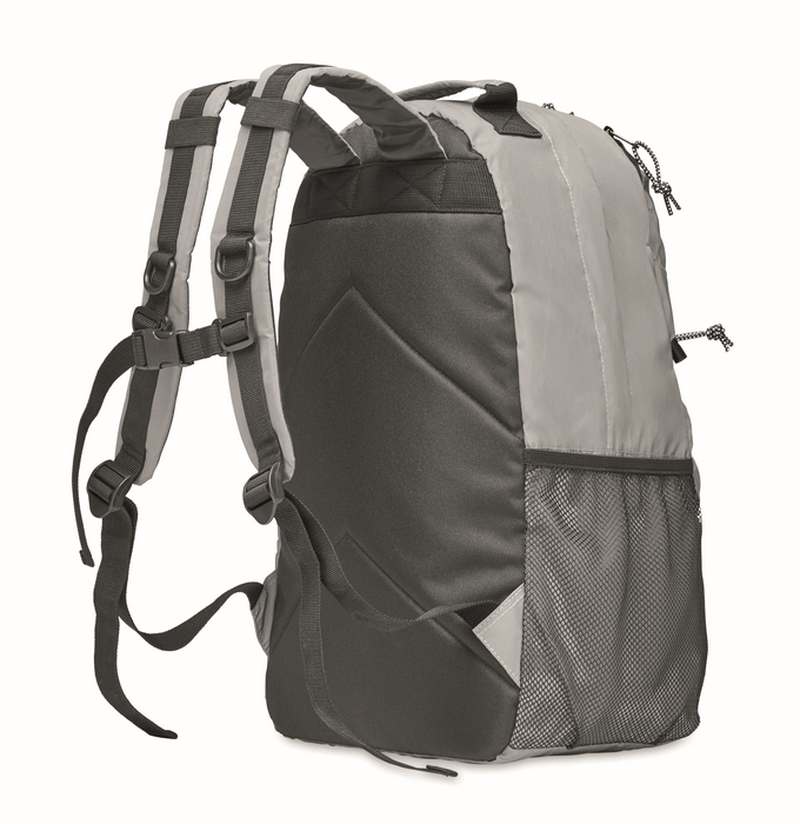 Batoh z vysoce reflexního polyesteru 190T se šňůrkou na přední straně. Polstrovaná záda, popruhy a dno. Má přihrádku na 15 palcový notebook. Jedna boční kapsa ze síťoviny a druhá boční kapsa na zip.
