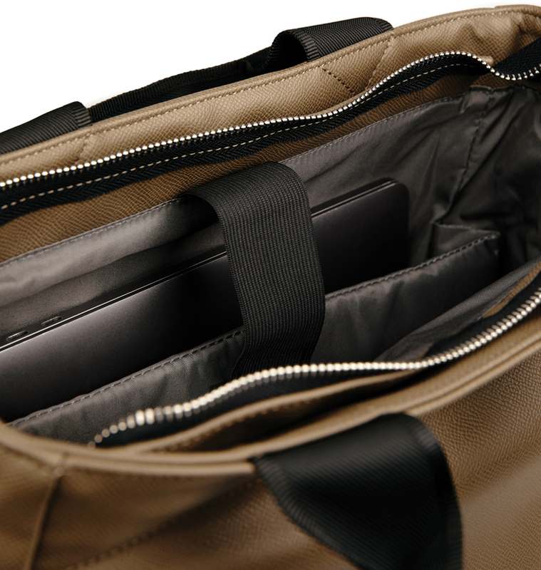 Nenápadný, přesto exkluzivní batoh do kanceláře i na cesty. Možnost nošení jako tašku nebo jako batoh. Polstrovaný oddíl pro bezpečný přenos notebooku. Vnější část vyrobena z RCS recyklované PU kůže, vnitřní část z kombinace RCS recyklovaných materiálů. RCS (Recycled Claim Standard) je globální standard, který umožňuje ověřit použití recyklovaného materiálu v produktu napříč celým dodavatelským řetězcem. Celkový podíl recyklátu dle váhy produktu: 27 % (recykl. polyester) a 8 % (recykl. PU).
