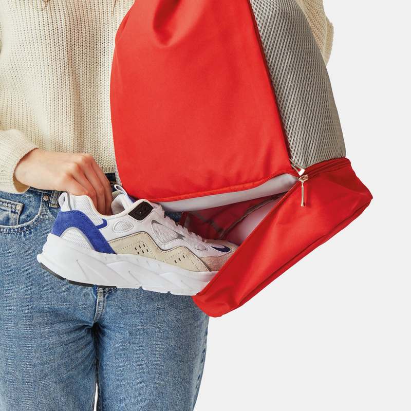 Batoh TRIP: se stahovací šňůrkou, která slouží jako uzávěr, a ramenními popruhy (nastavitelné), 1 velká hlavní komora na zip s 1 vnitřní kapsou na zip a 2 zasouvacími kapsami, 2 vertikální přední kapsy na zip, 1 přihrádka na zip na dně
