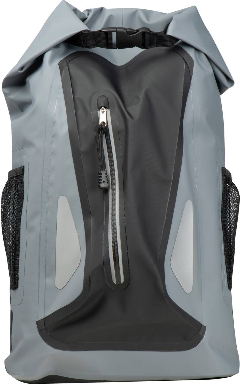 Voděodolný batoh z 600D PVC s reflexními plochami, polstrovanými ramenními popruhy, přihrádkou na nápoje a několika přihrádkami uvnitř. Dokonalý společník do každého počasí.