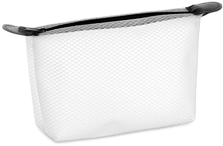 Kosmetická taštička v průhledném EVA pouzdru s černým zipem.