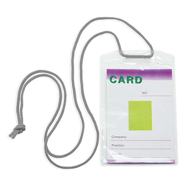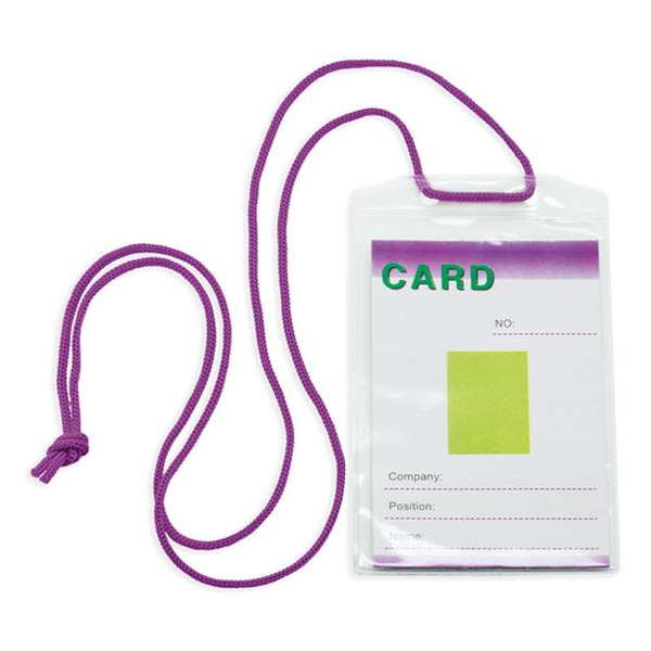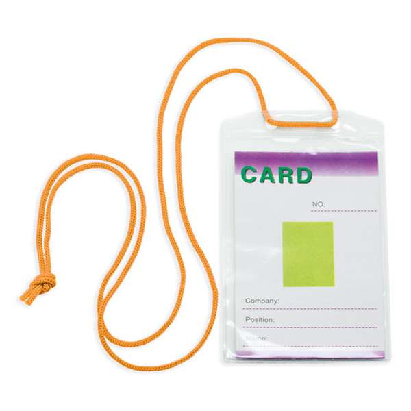Plastová čirá ID karta na berevné šňůrce o délce 110 cm. Na kartičku do velikosti 10,1x6,7 cm.